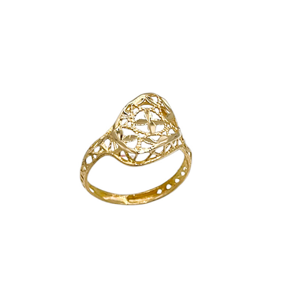 انگشتر توری بیضی (Oval Mesh Gold Ring) با ساختاری الهامگرفته از شبکههای نرم و کشیده طراحی شده است؛ حلقهای از طلای ۱۸ عیار که درون آن بافتی منظم از بیضیهای باز و متقارن ایجاد شده تا جلوهای سبک،透دار و در عین حال مقاوم داشته باشد. فرم بیضیها حس روانی و آرامی به طراحی بخشیده و آن را از مدلهای توری مربعی متمایز کرده است.