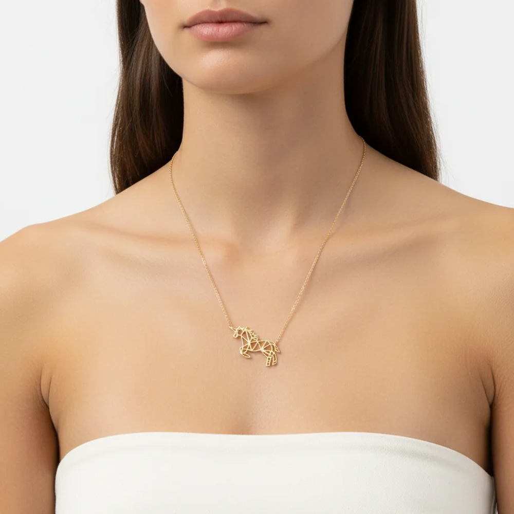 گردنبند یونیکورن، دنیایی از خیال و جادو را در قالب یک زیور جانبخش به استایل شما میآورد. یونیکورن، این موجود افسانهای با شاخ درخشان و حضور رؤیایی، نماد پاکی، امید و قدرت تخیل است. طراحی ظریف آن بر روی طلا، جلوهای شاد و پرانرژی دارد که مناسبت هر روز شما را خاص میکند. جزئیات دقیق و شاید کمی فانتزی در ساخت، باعث میشود هر نگاه به این گردنبند لبخندی به همراه بیاورد. انتخابی ایدهآل برای کسانی که به دنیای افسانهها، رنگهای شاد و حس متفاوت بودن علاقه دارند؛ یک گردنبند که همانقدر که زیباست، داستانگو نیز هست.